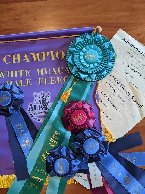 Most of our 2024 clip was sent off to production, but we did send four skirted fleeces off to two shows in 2024, the PAOBA Fleece Showcase and the MAPACA IFA Fleece Festival. As you can see, we were very pleased with our show results!